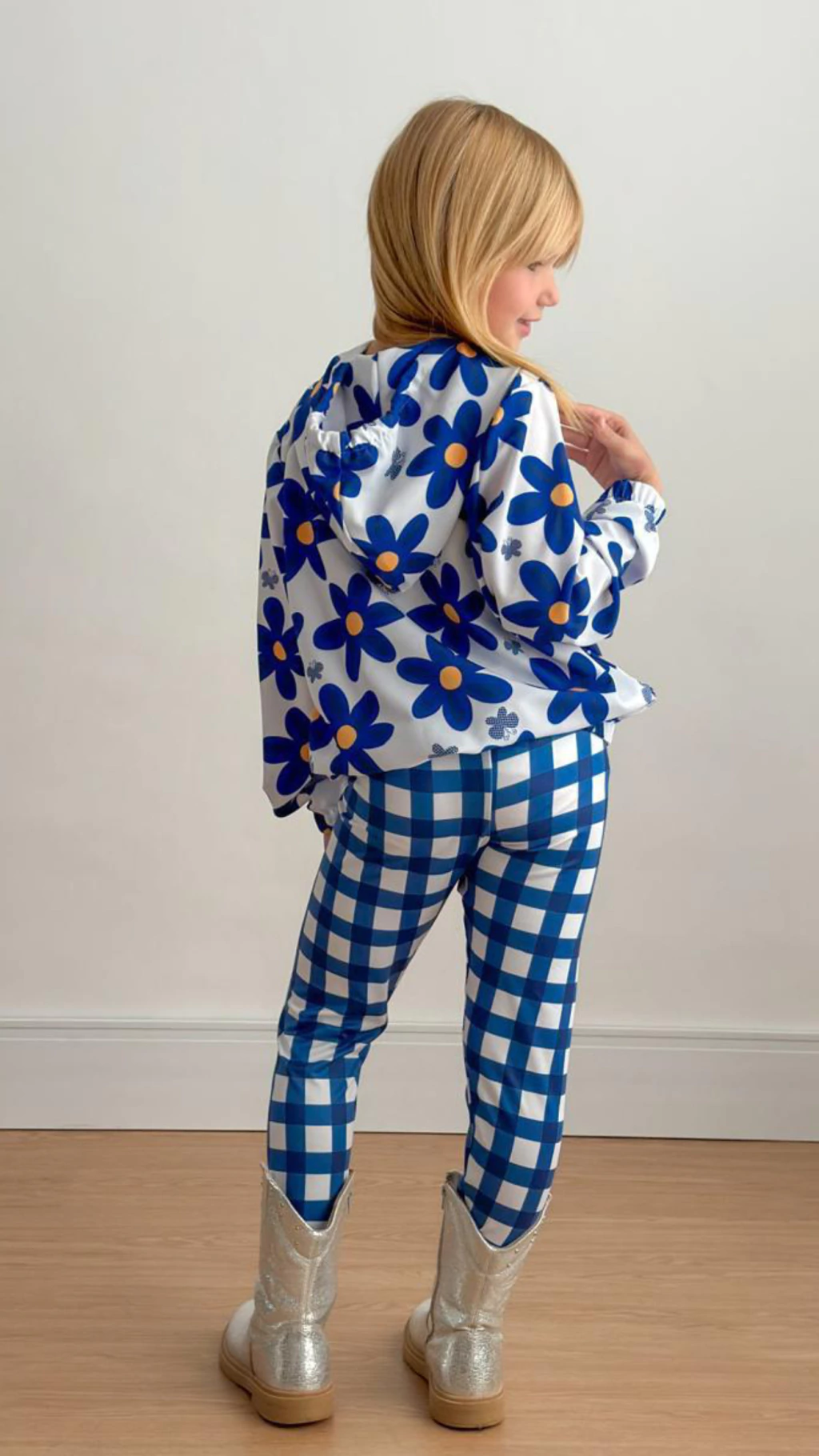 Corta vento com capuz e zíper no tecido crepe santorini e calça legging na malha de algodão na linha premium.